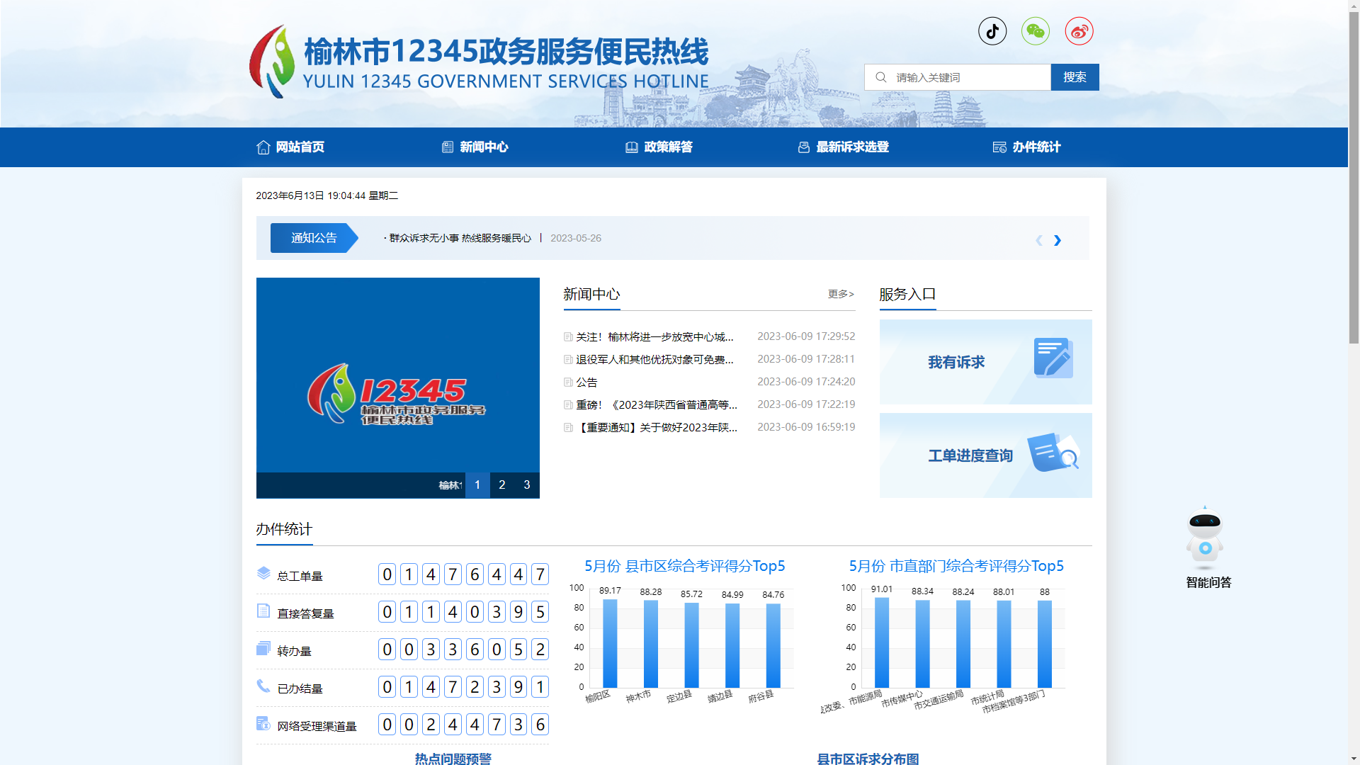 可建设12345官方网站,同时提供官网智能应答实现12345知识库系统自助查询等信息;办件统计数据;按工单类型的每日实时数据;12345接入渠道工单数据标准接口。